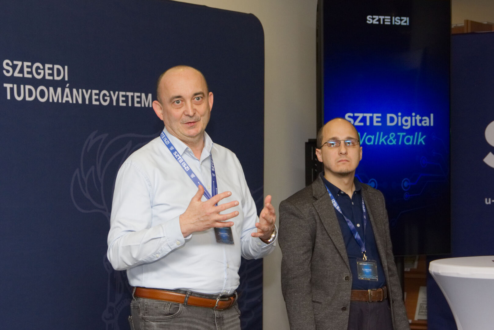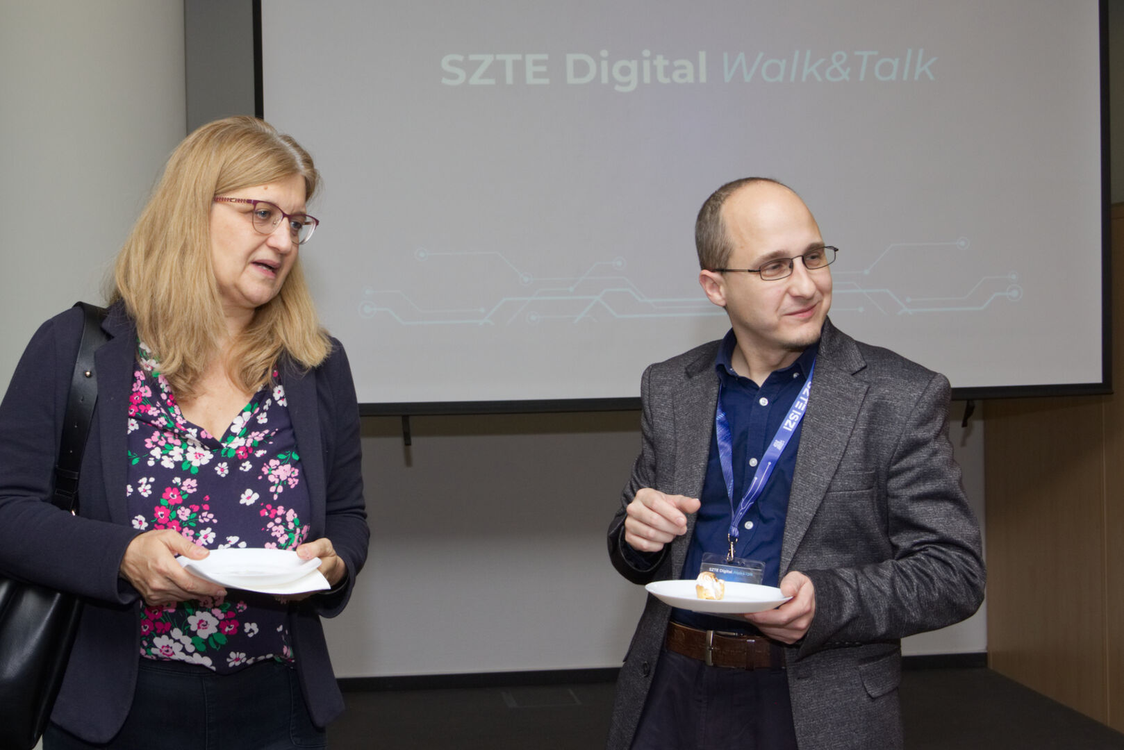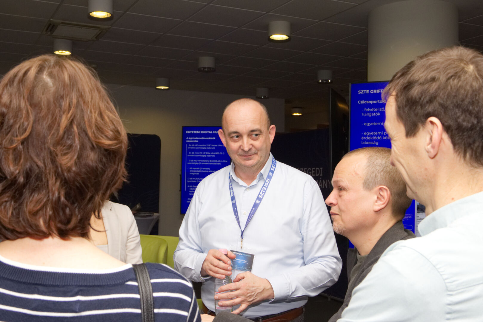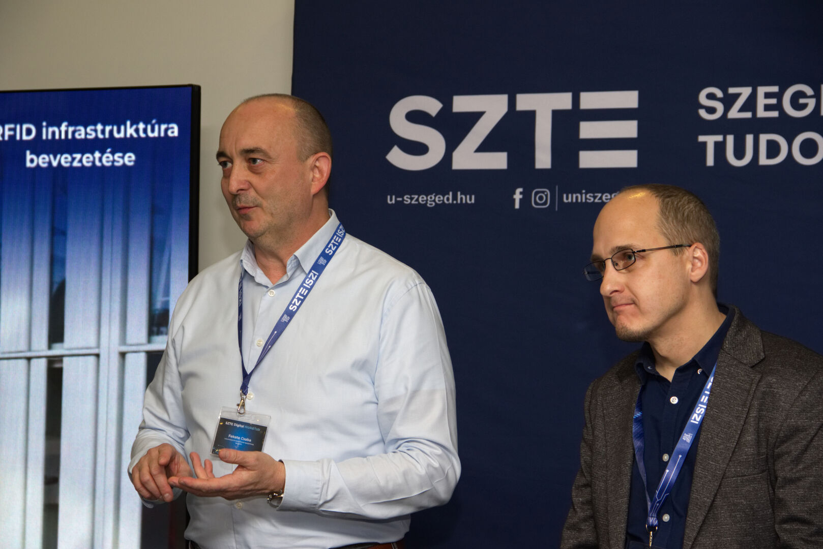 A Komplex digitális modellváltás – intelligens fokozatváltás projekt digitális fejlesztésekért felelős alprojektjének vezetője, Fekete Csaba, informatikai és szolgáltatási igazgató, valamint a projektben zajló könyvtárinformatikai fejlesztések felelőse, Dr. Nagy Gyula, a Klebelsberg Könyvtár és Levéltár főigazgatója közös eseményre invitálták az egyetem vezetőit és a projekt megvalósulását támogató munkatársakat decemberben. A programon digitális kijelzőkön és ledposztereken futó információs anyagok formájában, digitális kiállítással mutatták be az elmúlt időszak fejlesztéseit, amelyen a résztvevők a kiállítás megtekintése közben az egyes fejlesztési területek felelőseit kérdezhették kötetlen beszélgetések formájában.
